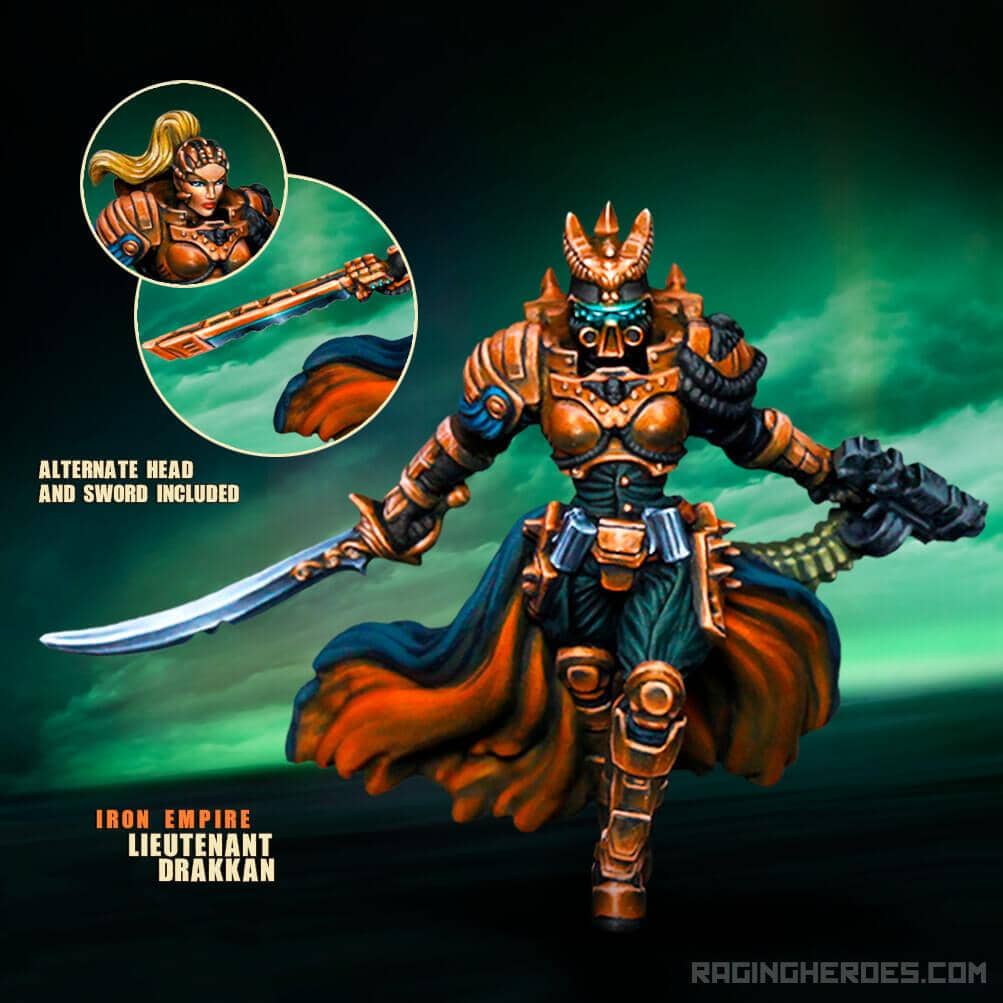 Lieutenant Drakkan, Iron Storm Officer + 2 sword options + 2 head options + 25mm round base.